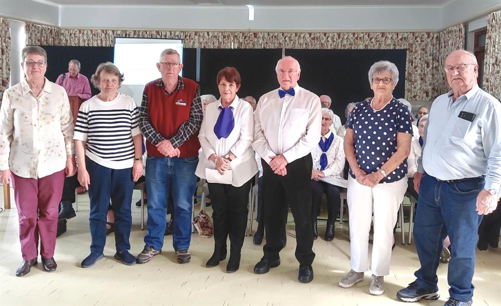 Die nuwe lede van die inwonerskomitee, van links: Marie van der Walt, Lilian Hurter, Maritz Stander, Peggy Visser, Coenie Ritter, Elna Stander en Hennie Fivaz. Afwesig Ron Atkins