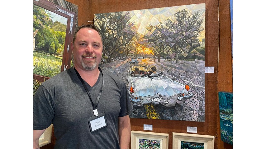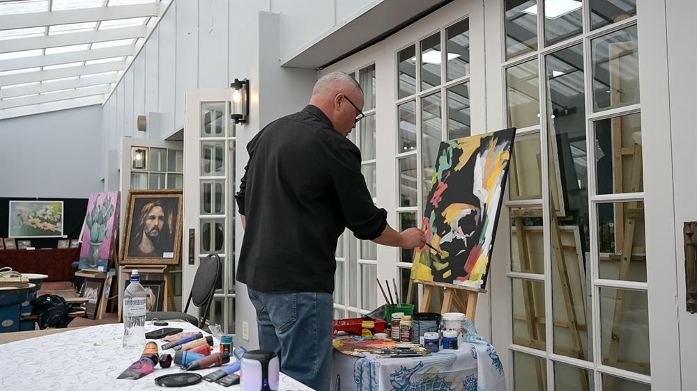 Kevin van Niekerk during his upside down painting demo. Photo: Sanjay Lalwani