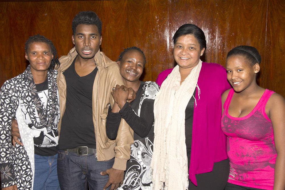 After the show fans lined up to have their photos taken with Emo. Seen here are the ladies from Phambili refuge for abused women and children in Rosemoor whose tickets were sponsored by DataDot, from left: Venesia van Beulen, Emo Adams, Julia Jansen, Maryda Squire and Simone Freeks. Photo: Aretha Botha