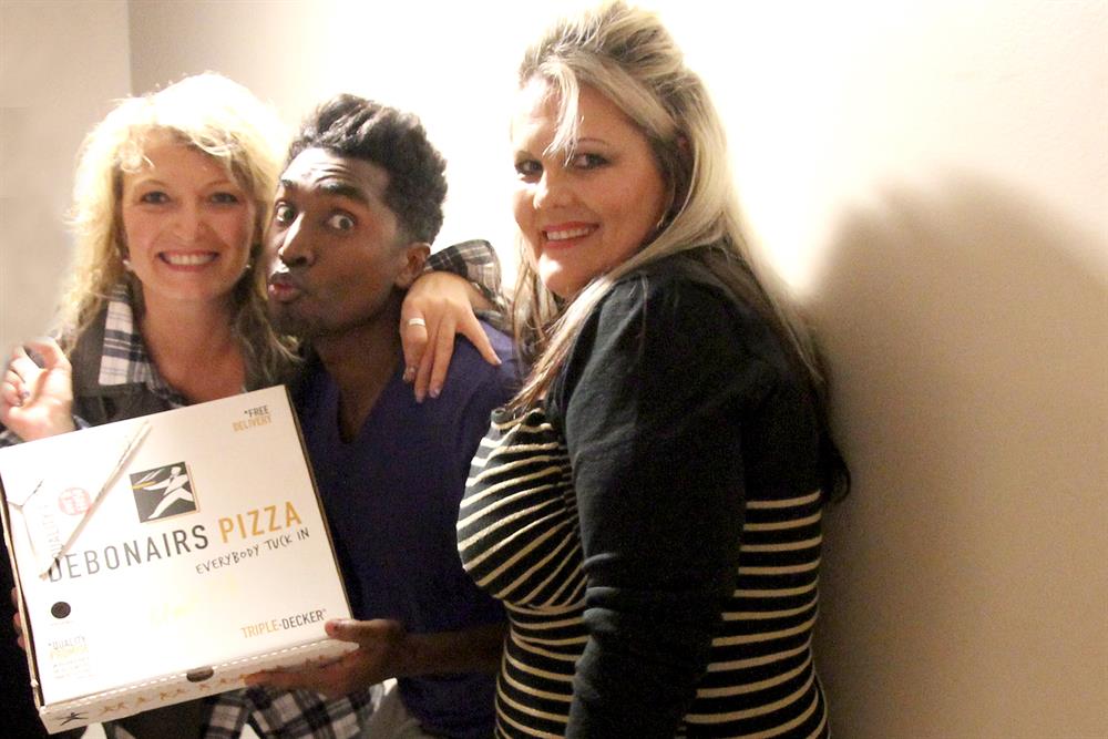 Local photographer Aretha Botha, Emo Adams and Santie Venter, from Extreme Functions, enjoyed delicious pizzas sponsored by Debonairs.