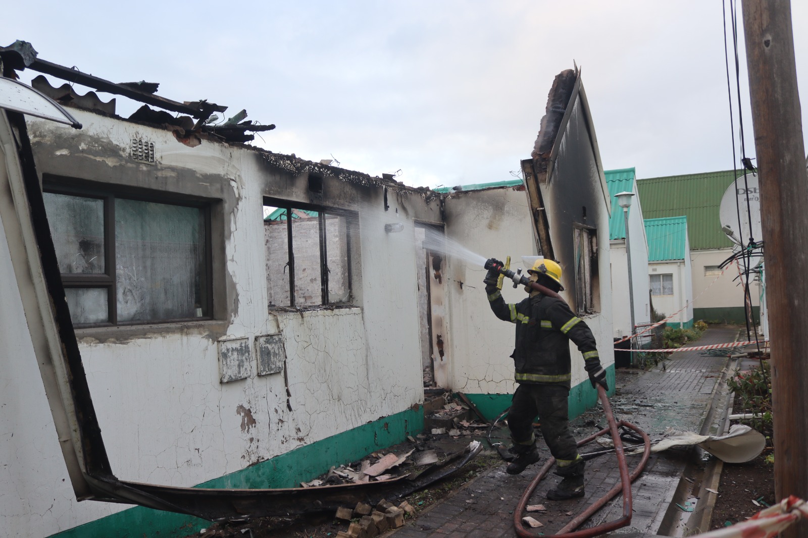 Die oorsaak van 'n brand wat vanoggend, Vrydag 5 Julie, by die Rosemoor-dienssentrum uitgebreek het, is in hierdie stadium nog onbekend. Twee wooneenhede het groot skade gely en een van die inwoners, Kitty Claassen (76), het al haar besittings verloor.