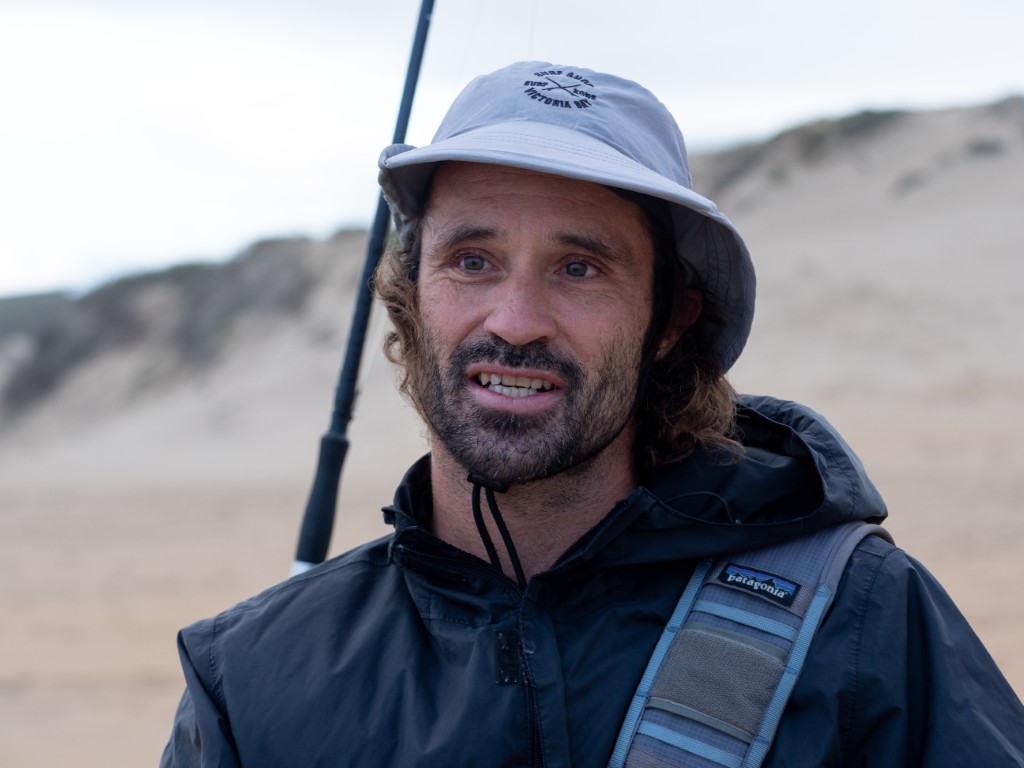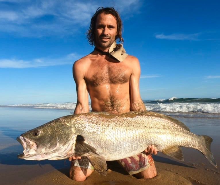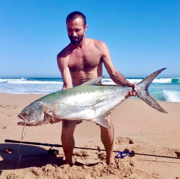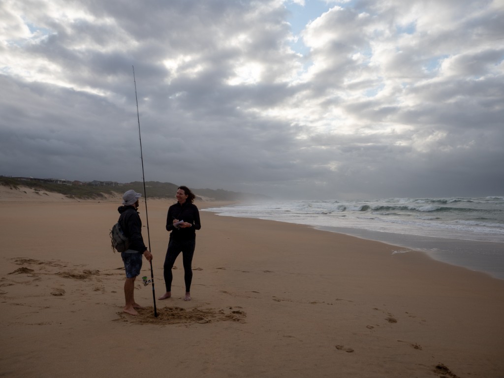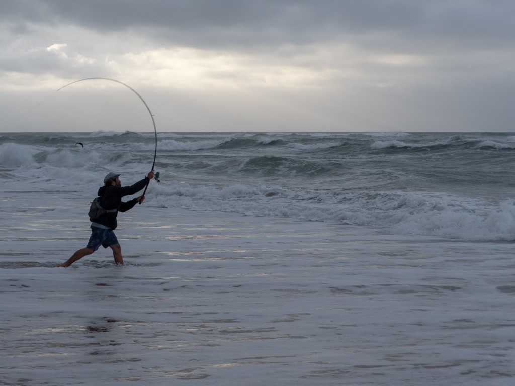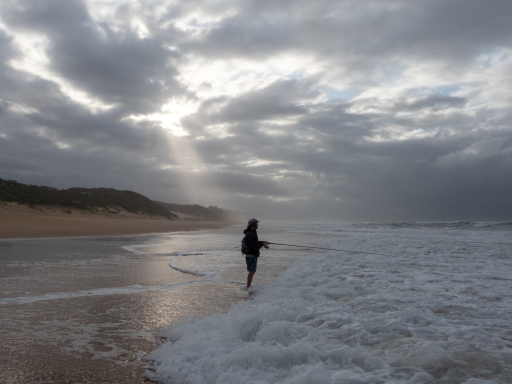 Adin Jeenes, a Kleinkrantz resident and co-owner of Joplins Steak Restaurant in Wilderness, has a unique fishing technique and is often seen on the Kleinkrantz beach, constantly on the move.