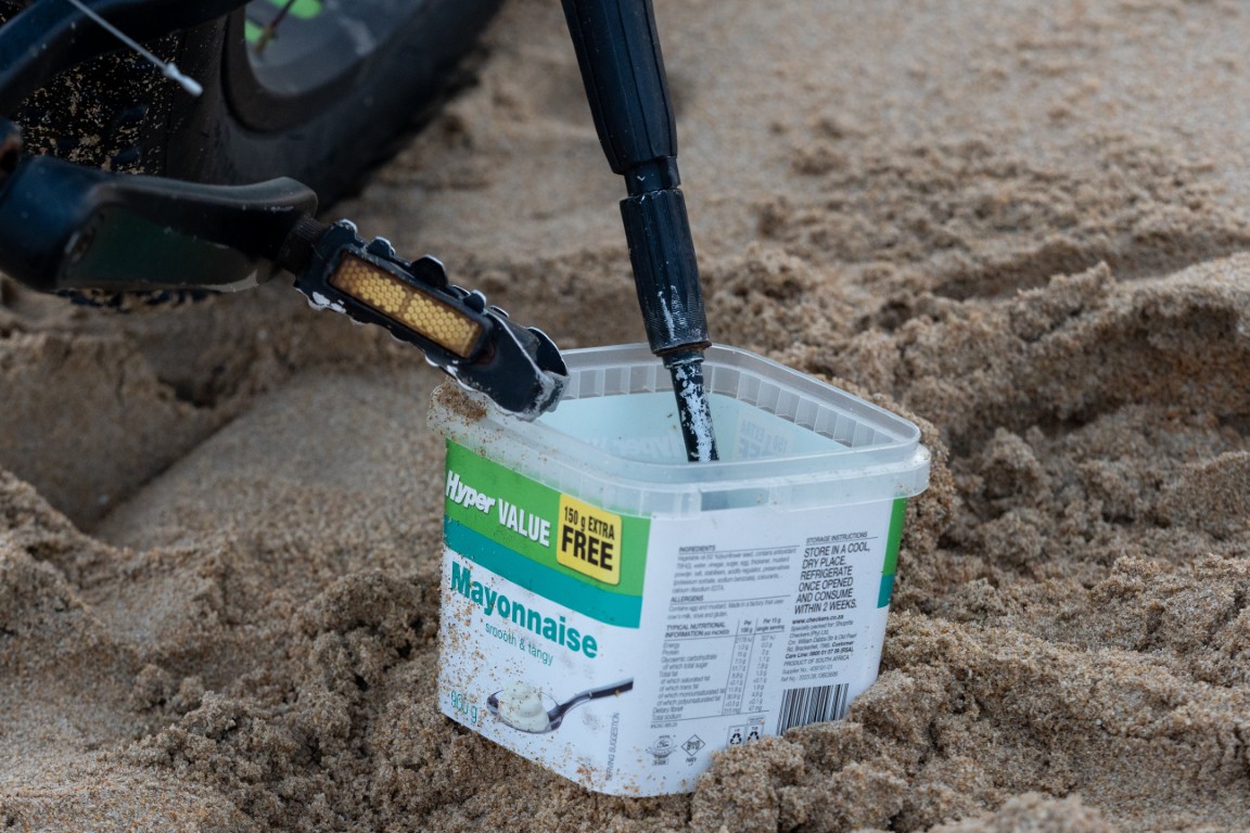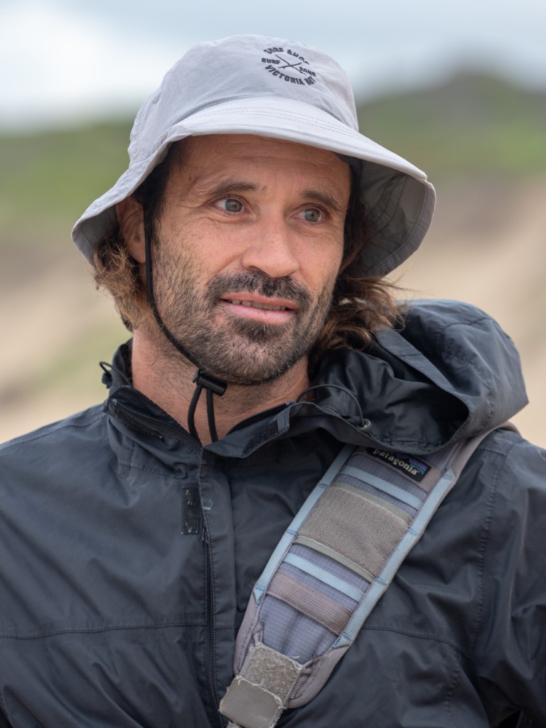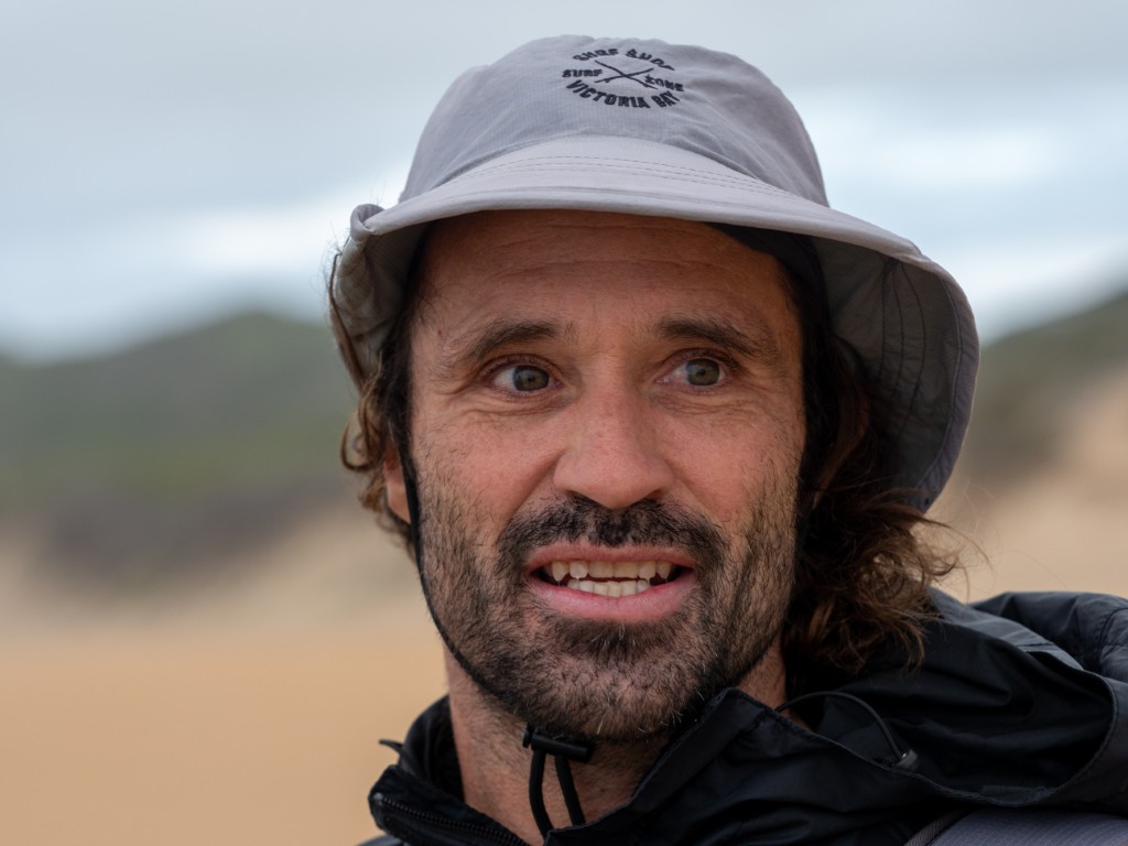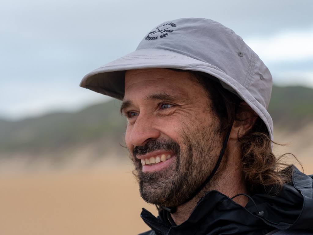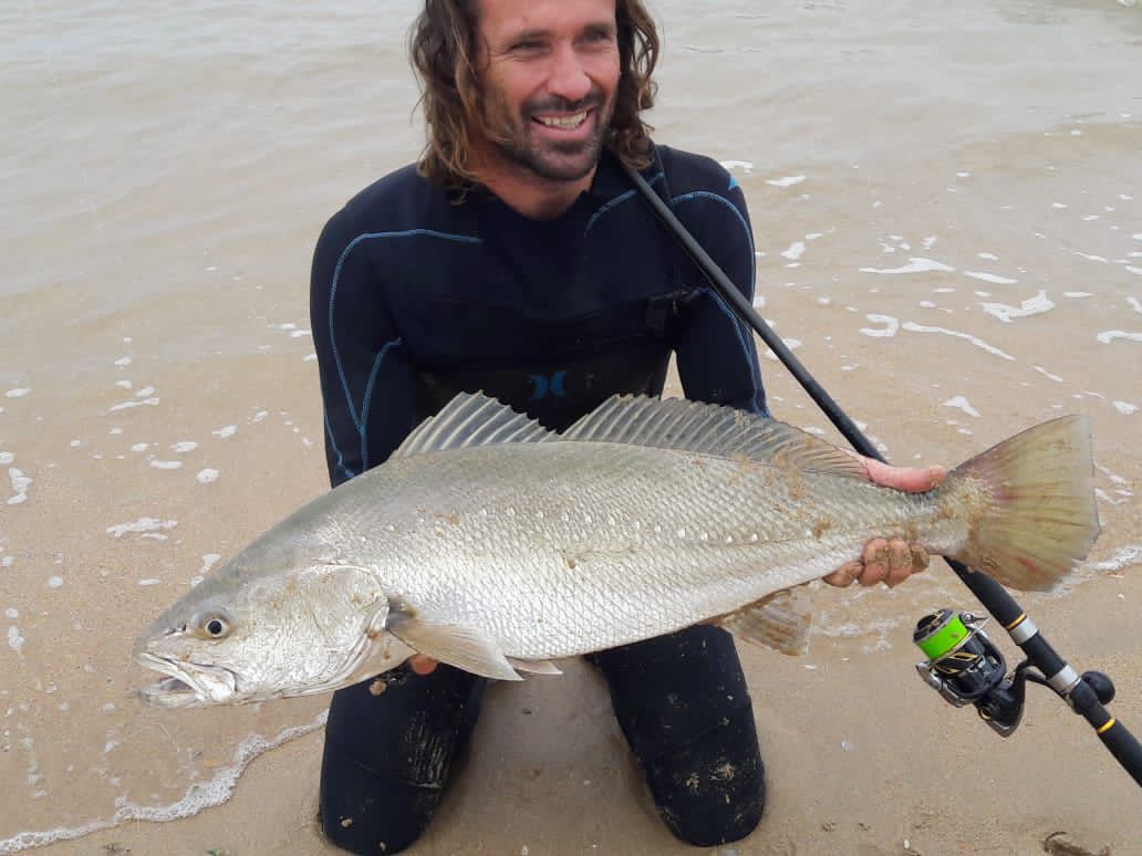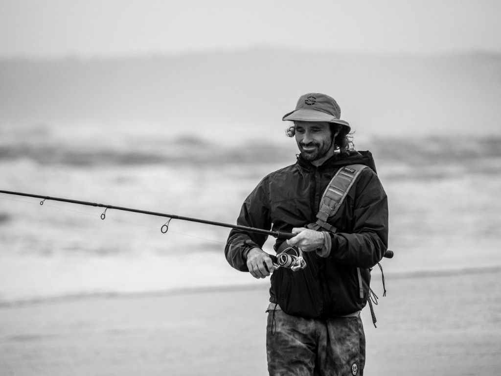 Adin Jeenes, a Kleinkrantz resident and co-owner of Joplins Steak Restaurant in Wilderness, has a unique fishing technique and is often seen on the Kleinkrantz beach, constantly on the move.