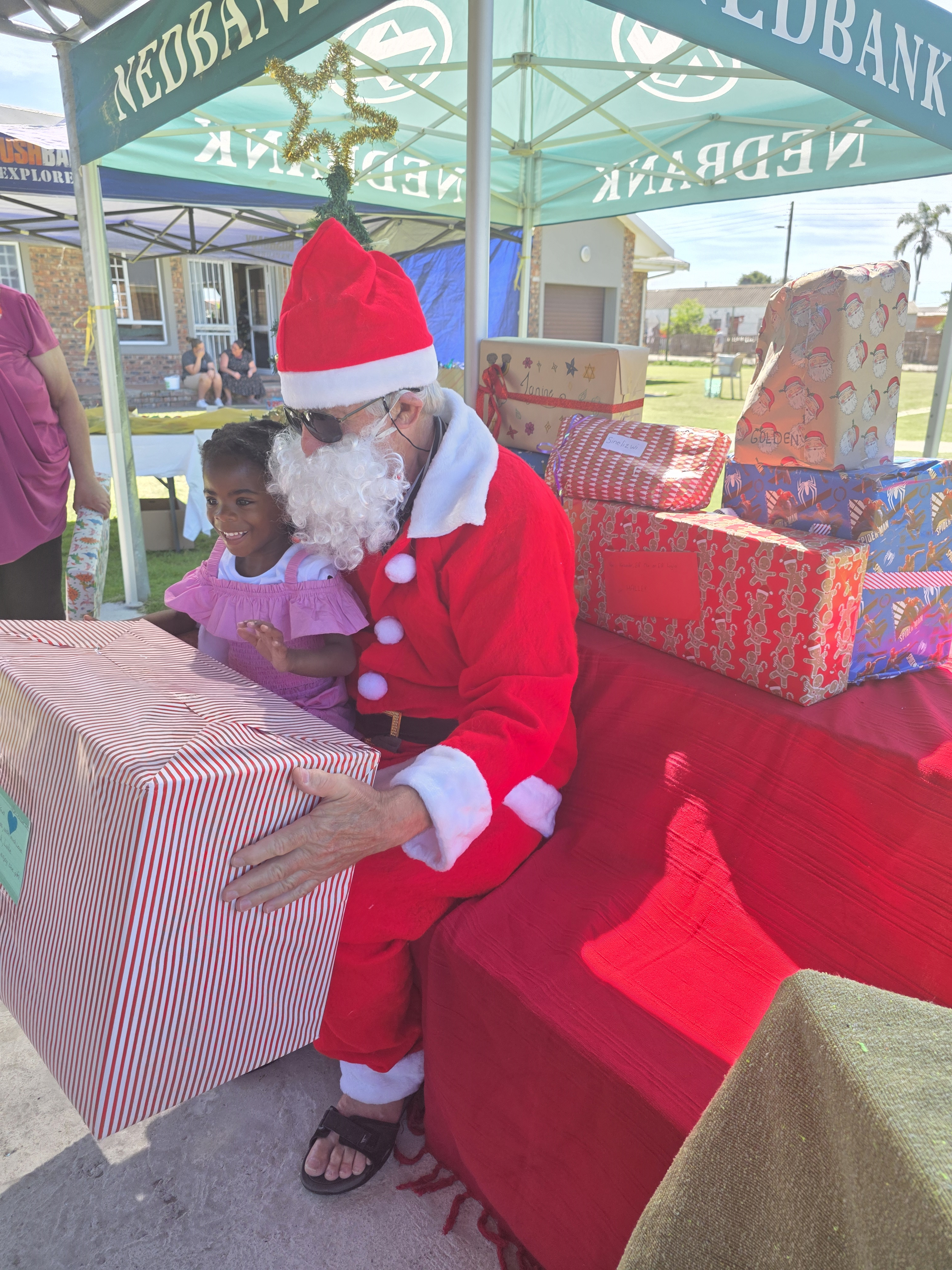 Some 40 learners of the Outeniqua Primary School's Early Act Club, visited the children of the Milestone Development Programme at Bethesda. They played with the children and handed over gifts, cakes and snacks for them. It was the Early Act Club's last community project for the year.