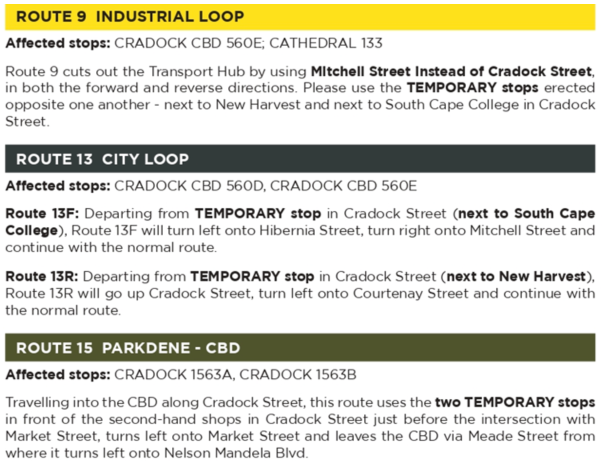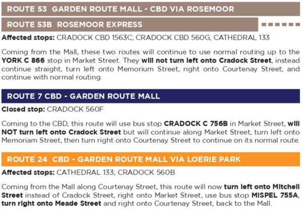GEORGE NEWS - All routes using this section of Cradock Street will be rerouted in a way to cause the least inconvenience possible.