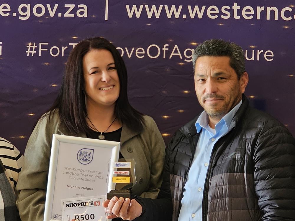 Michelle Noland van PHC Groeneweide het die prys gewen vir Beste Potensiaal. Sy ontvang haar sertifikaat van Clyde Lamberts, adjunkdirekteur van die Wes-Kaapse departement van landbou - Tuinroete.