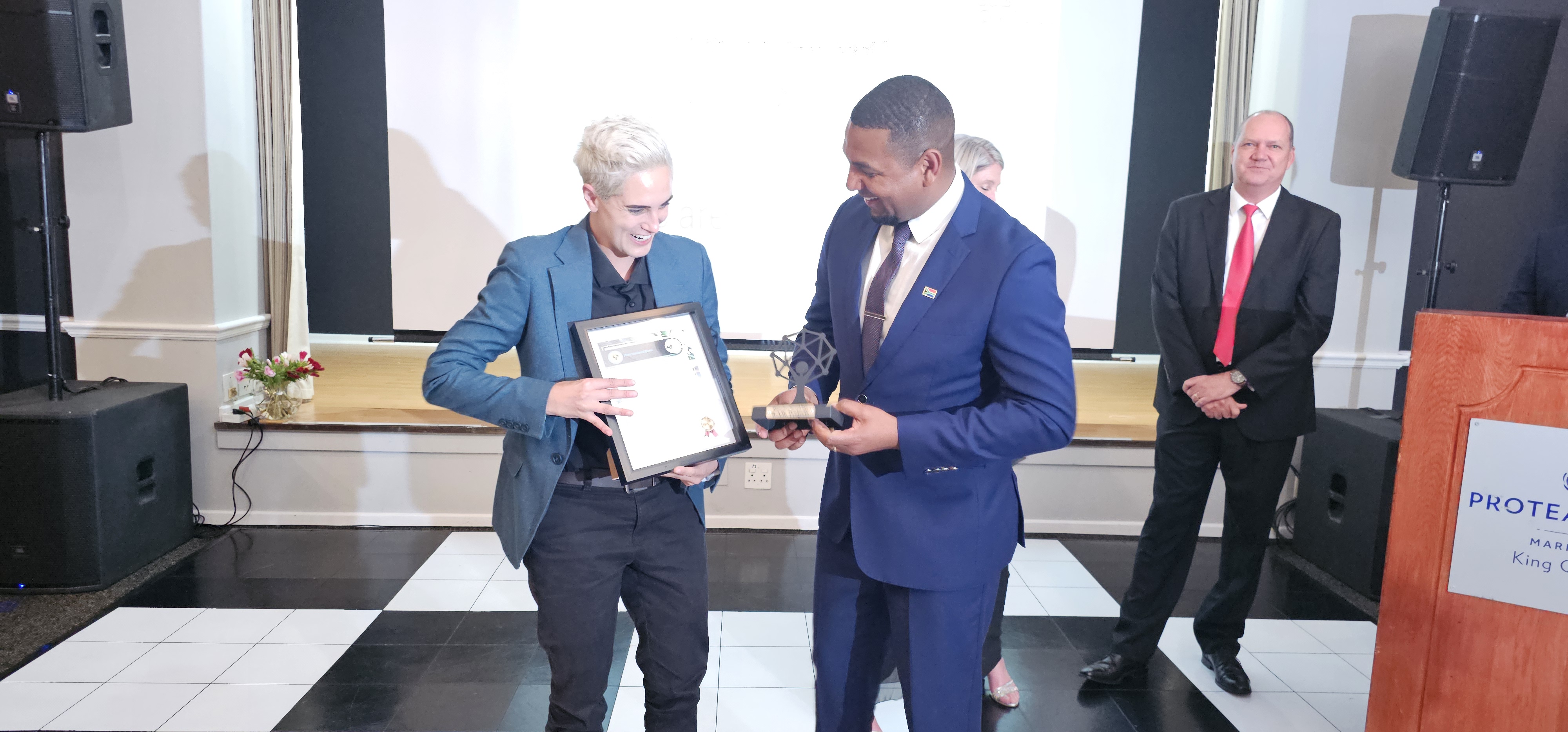 Nikki du Toit receiving her award from George Deputy Mayor Browen Johnson.