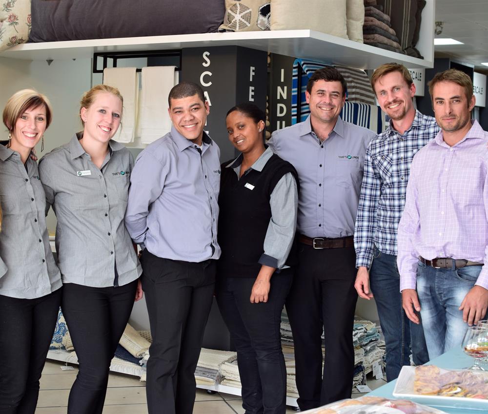 That's Linen in York Street sells top quality linen at wholesale prices. From left are Jané Odendaal (financial manager), Kaylynne Pannifer (sales and marketing), Morné von Beulen, Evelyn Pietersen, Lehan Albertyn, Emile Annandale (owner) and Paul Odendaal (owner).