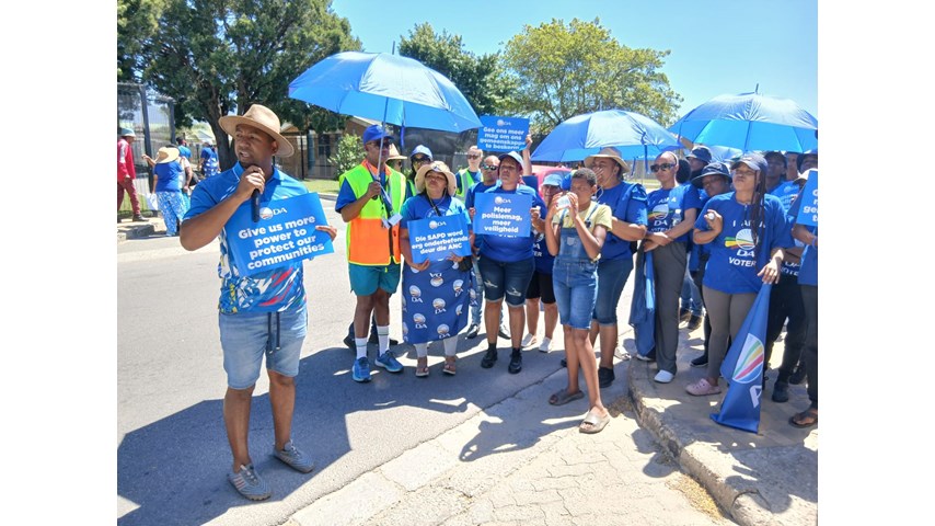 GEORGE NUUS - Die Oosstreek van die DA in die Wes-Kaap het op Vrydag 19 Desember 'n optog na die Conville-polisiestasie gehou waar George se burgemeester, Browen Jonson, 'n petisie aan die polisie oorhandig het in verband met die hoë misdaadsyfer.