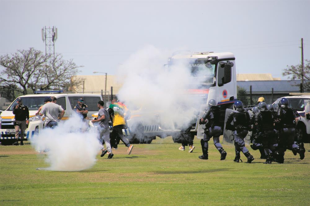 Members of the Public Order Policing Unit (Pop) gave an operational display of what a riot would look like for them. Photos: Kristy Kolberg