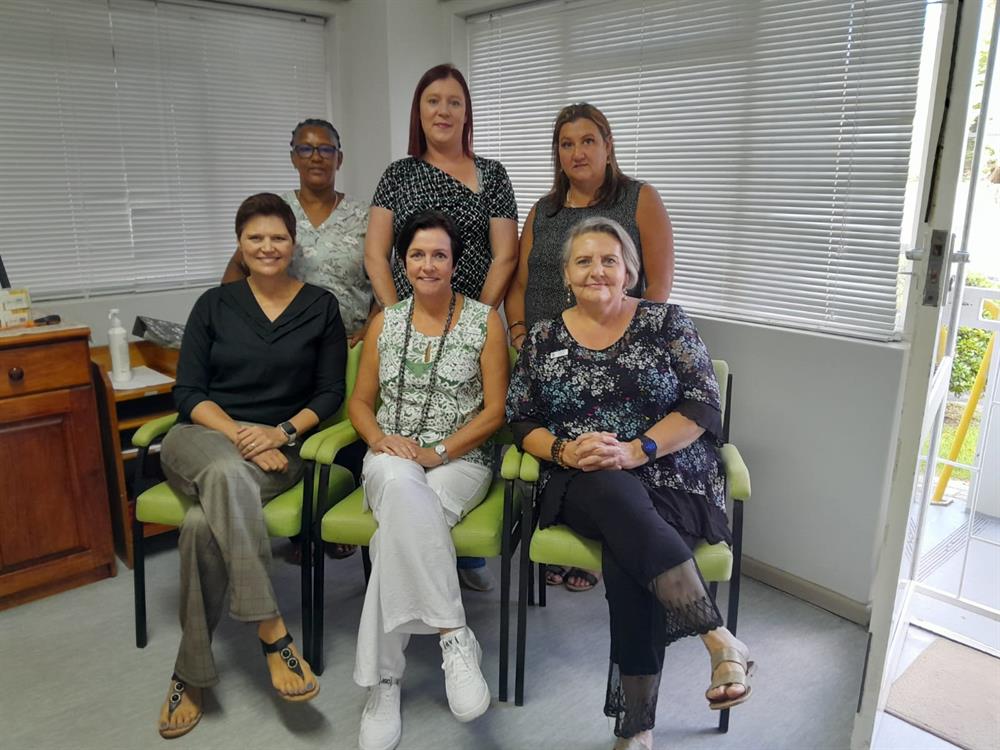 The dedicated management team of George Service Clubs. Back from left: Johanna Biehl (healthcare coordinator), Angelique Botha (service centre coordinator) and Deirdrè Swart (administration). Front: Santie Tredoux (accountant), Mariza van der Merwe (general manager) and Sr Yolanda Wilson (nursing manager). Photo supplied