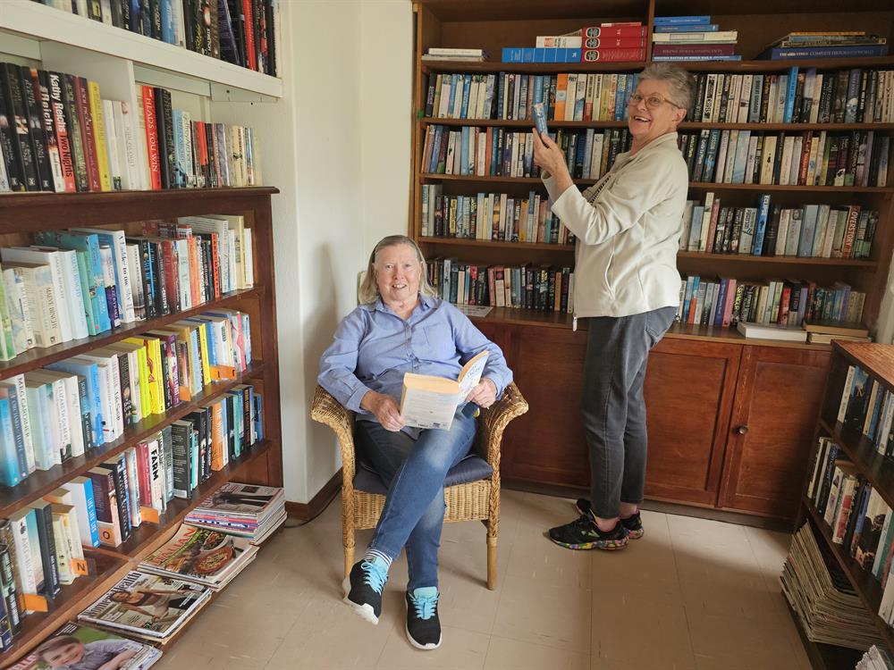 The library corner is very popular. It also features a cosy corner with comfortable seating to sit and read. Dezi Evans (left) and Lesley Welch are regulars.