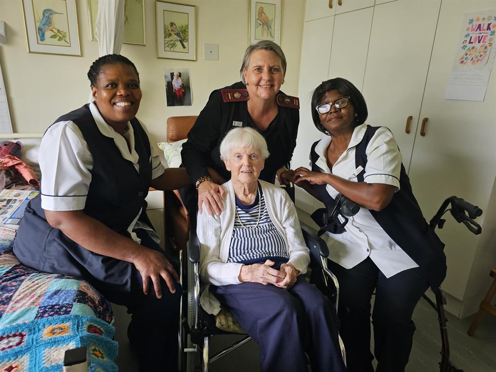 Lyttelton resident Vesta Watters with some of the staff, from left: Sarah Mbaxa, nursing service manager Sr Yolanda Wilson and Donita Pietersen.