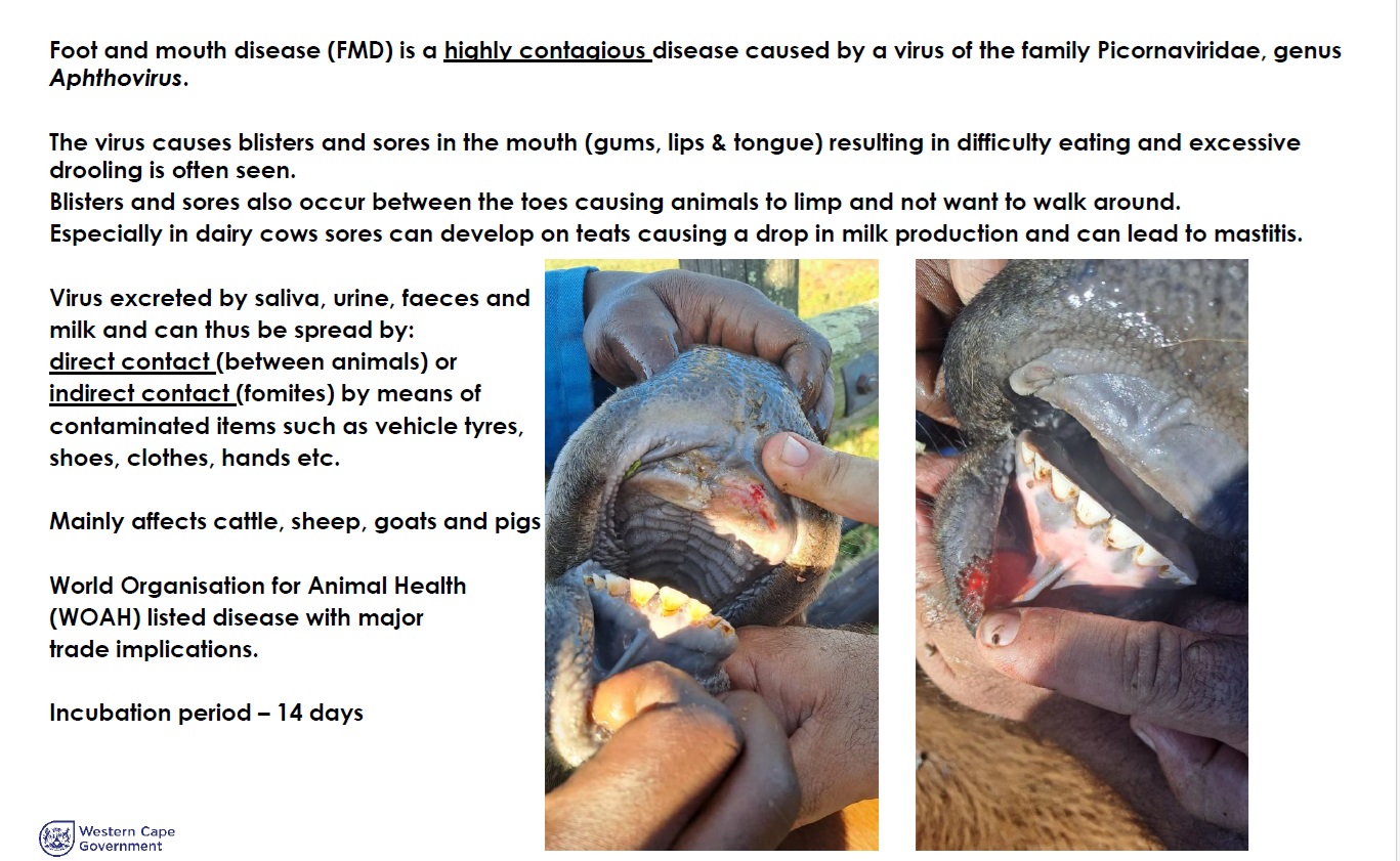 GARDEN ROUTE NEWS - In a joint effort, veterinarians and farmers from the Southern Cape have taken the lead in the Western Cape to urge the provincial government to introduce formal control measures to prevent the spread of foot-and-mouth disease (FMD) over local borders into the province.