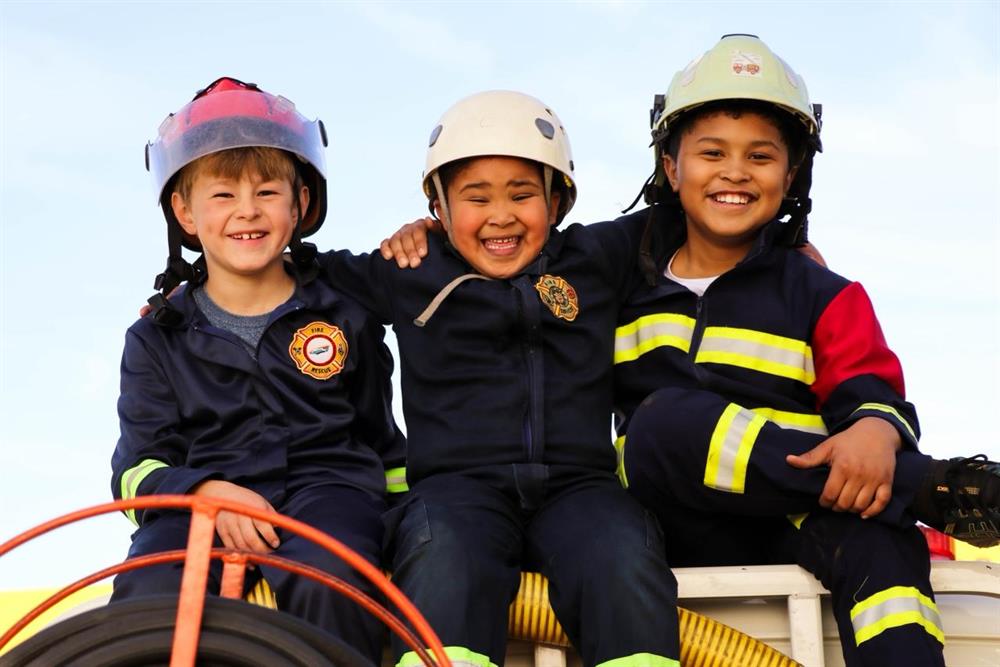 Little firefighters: Wyatt Elliot (7), Themica Lottering (6) and Matthew Conrad (8). Photo: Anneke Elliot