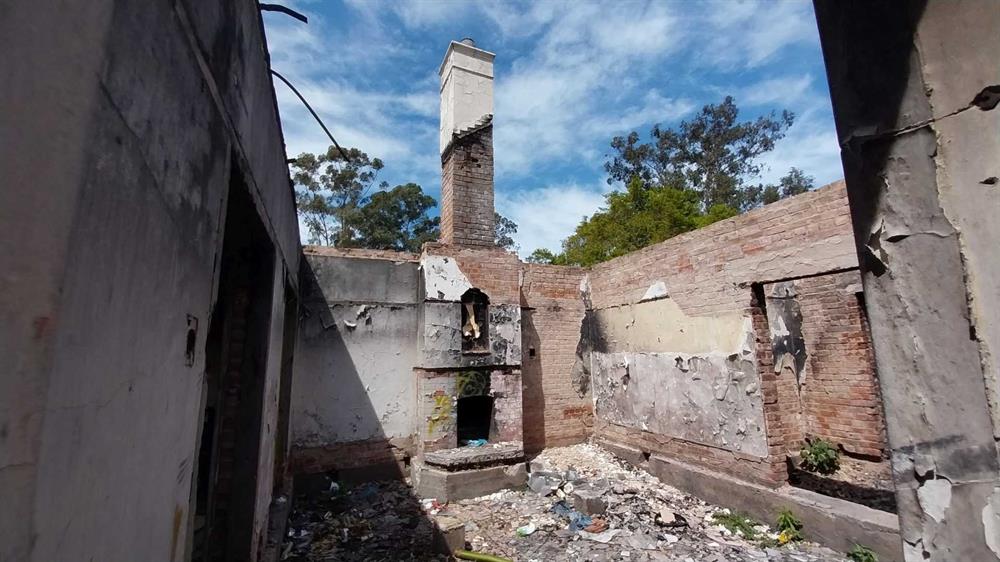 The historic magistrate’s house, which was still in a livable condition a decade ago, was broken into by homeless people and since then has deteriorated to its current ruined state. Fires were made inside and it has been stripped so that only the walls remain standing, which are now being guarded.