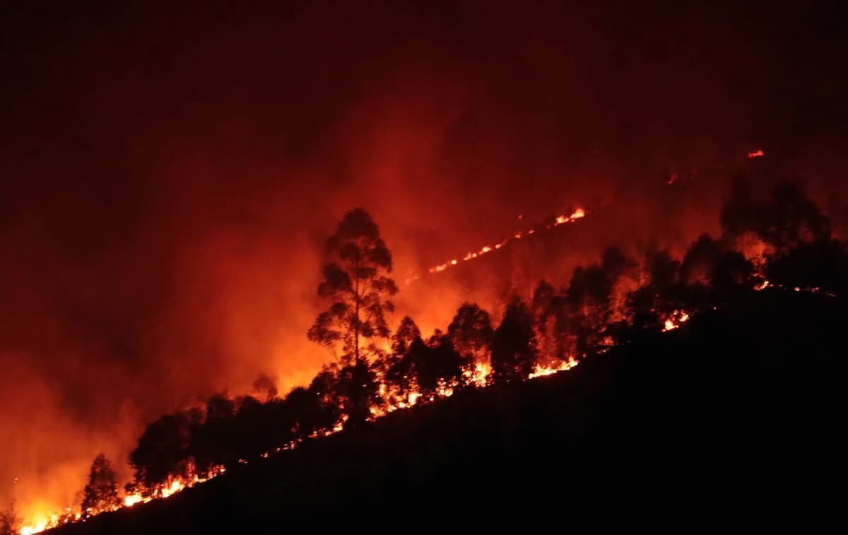 George Fire Department is currently monitoring the fire on inaccessible slopes and preparing protection measures for structures along the perimeter.