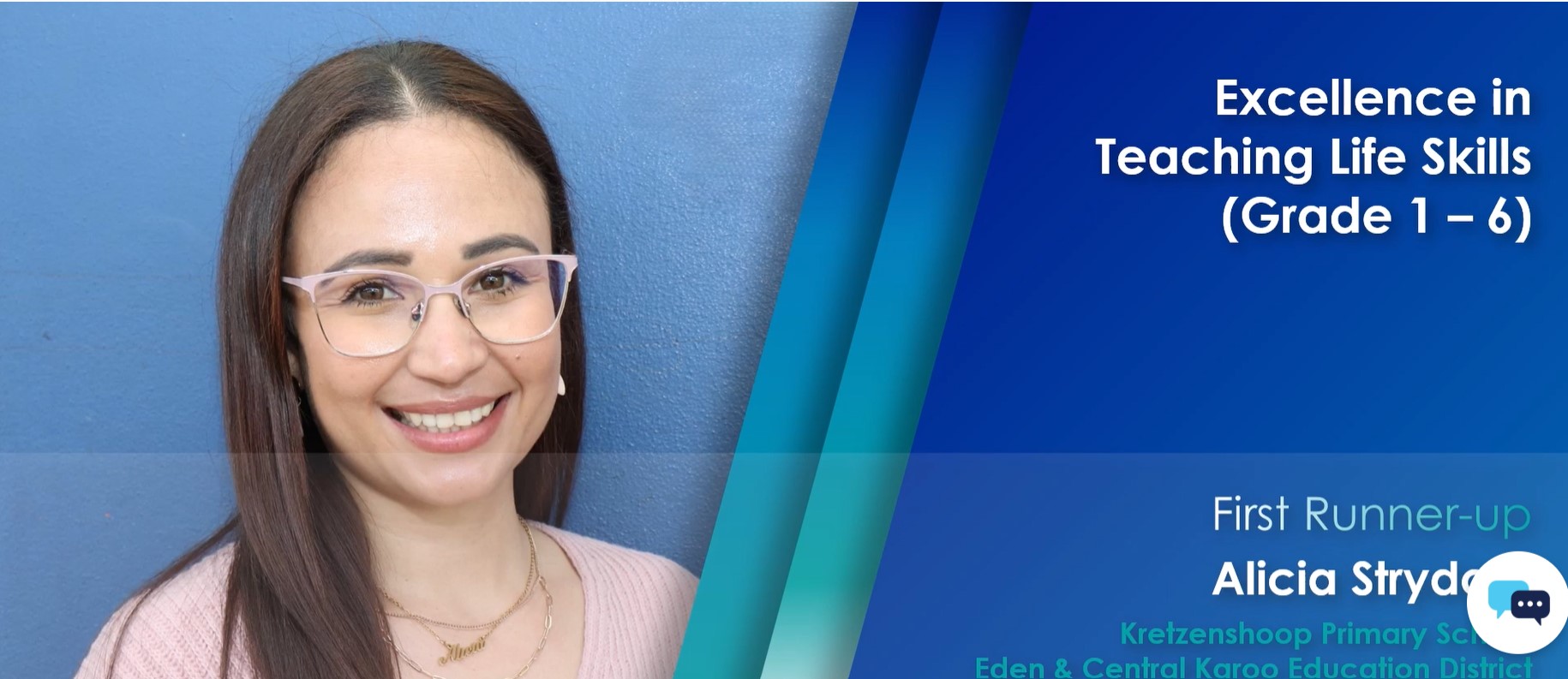 Alicia Strydom, also from Kretzenshoop PS, was named first runner-up for excellence in teaching life skills. Photo: Screenshot from WCED video