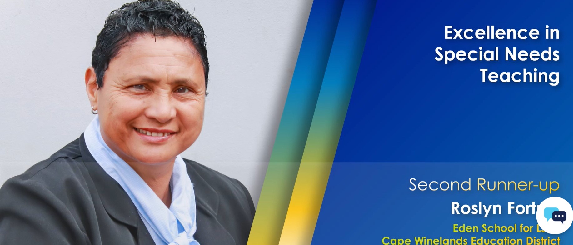 Roslyn Fortuin, a teacher at the Eden School for Special Educational Needs, was named as second runner-up for excellence in special needs teaching.