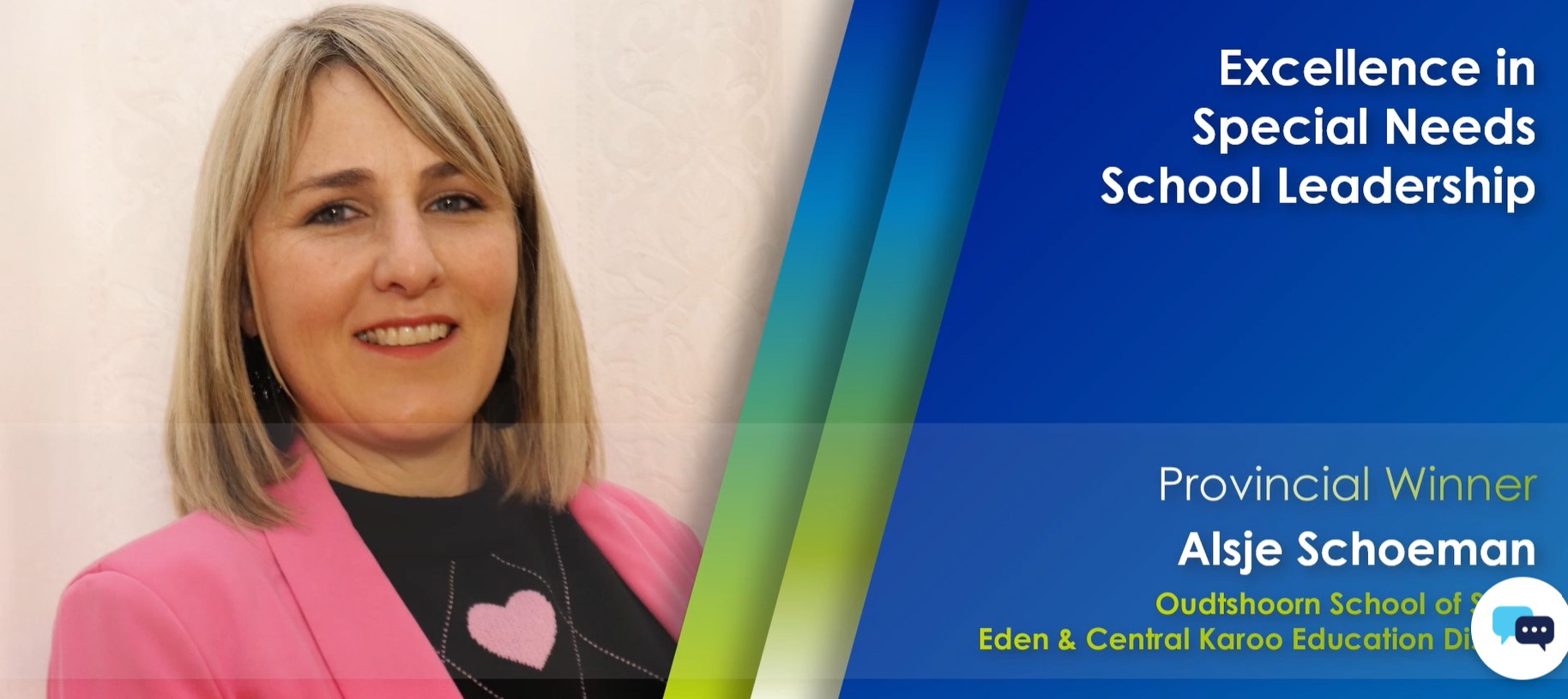 Alsje Schoeman (Oudtshoorn School of Skills - excellence in special needs leadership).