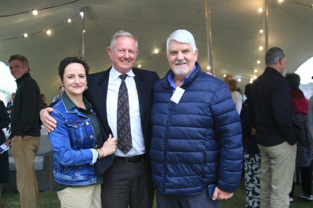 Skoolhoof Christo Vorster (middel) saam met sy vrou Karin en oud-onderhoof en -onderwyser, Chris Hattingh, by Vrydagaand se geleentheid. Foto: Kristy Kolberg‘Ons bring jou die nuutste Tuinroete, Hessequa, Karoo nuus’