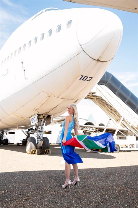 Haar nasionale kostuum, wat sy tydens die modeparade gedra het, is geïnspireer deur die Brenton Blue Butterfly - 'n skaars skoenlapperspesie wat net in Brenton on Sea in Knysna voorkom.