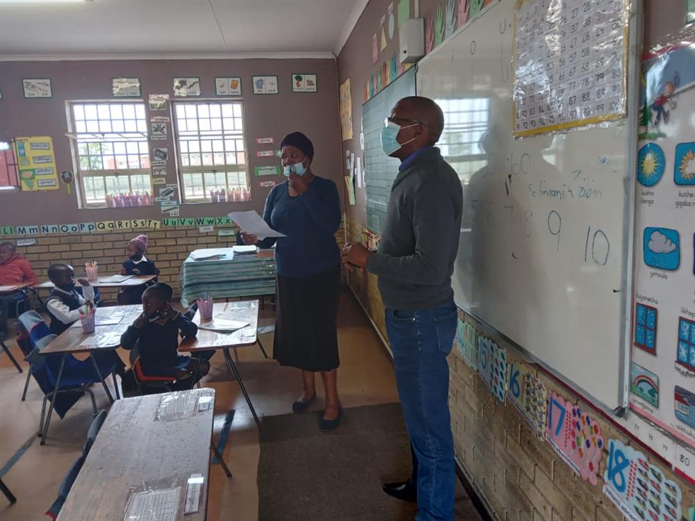 Senior library assistant Anet Kortman of Thembalethu Library reads aloud at Tyholorha Primary School.