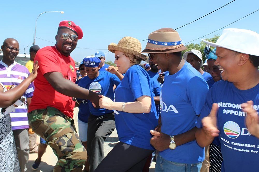 The good old days. During the George by-election in Ward 11 on 1 February 2017, Mbulelo Magwala (left) as the convenor of the EFF in the Southern Cape and Helen Zille as Western Cape Premier (next to him), danced in Ngcakani Street in Thembalethu. Photo: Michelle Pienaar