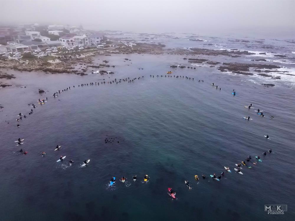 The paddle-out for Michael in Onrus. Photo: Maku Visuals