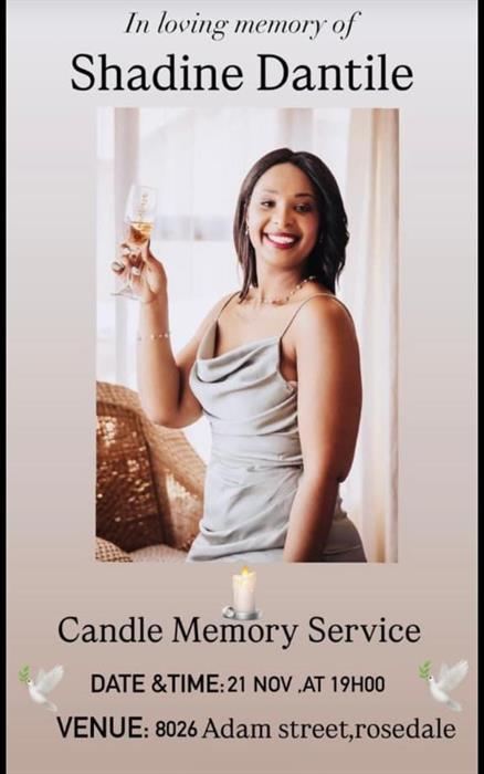 Shadine Dantile se lewe is tydens ’n kersliggedenkdiens op 21 November gevier. Sy is die volgende dag begrawe.