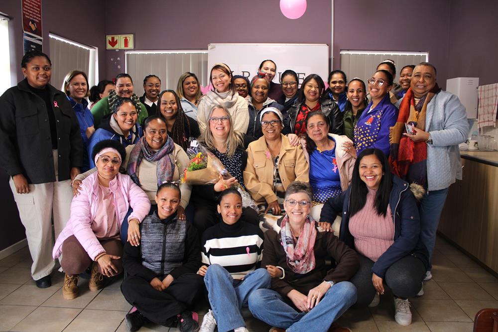 Onderwysers en weldoeners van Pacaltsdorp Primêr, saam met die gasspreker, Michelle Pienaar (middel). Foto: Charlton Potts