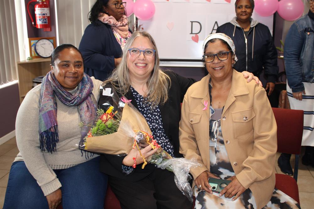 Angelique Vezasie, voorsitter van die beheerliggaam (links), Michelle Pienaar, George Herald-verslaggewer en gasspreker, en Venita Saayman, naaldwerkster van formaat en die vrou wat gereeld leerders vervoer. Regs agter is Shanelda Hamad, hulporganiseerder van die geleentheid. Foto: Charlton Potts