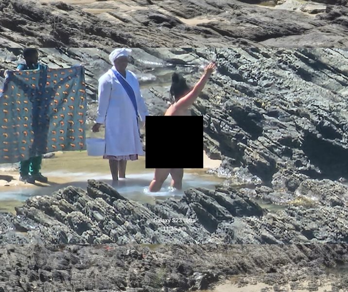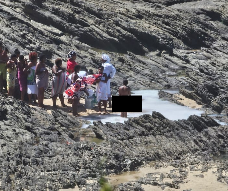 GEORGE NEWS AND VIDEO - A camper at Victoria Bay, visiting all the way from Gauteng, couldn't believe his eyes when he bore witness to a group of women being baptised stark naked in a rock pool by a person dressed in religious attire.