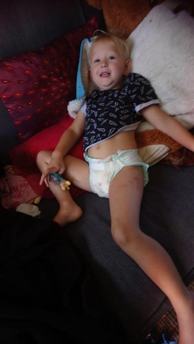 She has little to no scarring left.Little Iris's whole leg was swollen, from her foot to her thigh. She is currently recovering at home but cannot walk yet. Haupt says her daughter is already crawling around and playing with her toys, being her busy happy self.