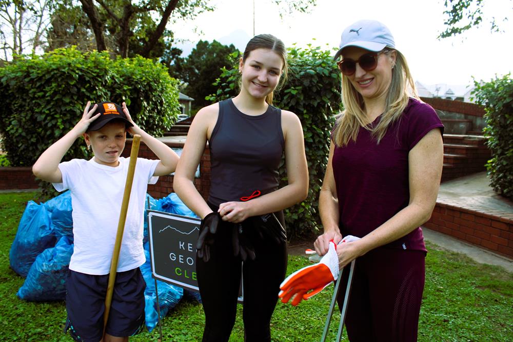 Carter (12), Olivia (15) en Ashley Farrell maak gereed om strate skoon te maak. Carter en Olivia is albei leerders van Glenwood House, waar gemeenskapsdiens deel vorm van hul kurrikulum.