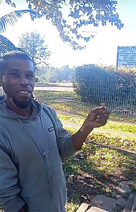 VIDEO - Grifford Figland wys ’n lewendige spinnekop wat hy gevang het.