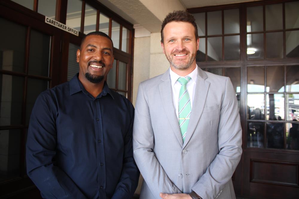 Browen Johnson (left) will be inaugurated as the new mayor of George. He is snapped here having a chat with the newly elected District Mayor Marais Kruger.