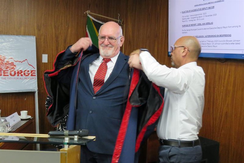 Johnson said he takes up the responsibility “with humility and a firm commitment to all our residents”, adding that strengthening service delivery and accountable governance will be central to his term. Van Niekerk pledged his support for the new administration, highlighting stability, fiscal discipline and equitable services across all wards.