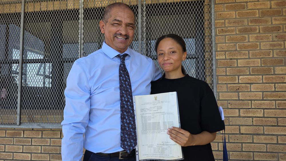 Skoolhoof Phillip Rothman saam met Charlise Jantjies ná sy haar uitslae ontvang het.