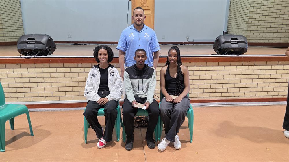 Graadhoof Ian le Roux saam met die drie toppresteerders Paulton November (middel), Lutho Noorman (regs) en Jo-Nique October. Foto's: Kristy Kolberg