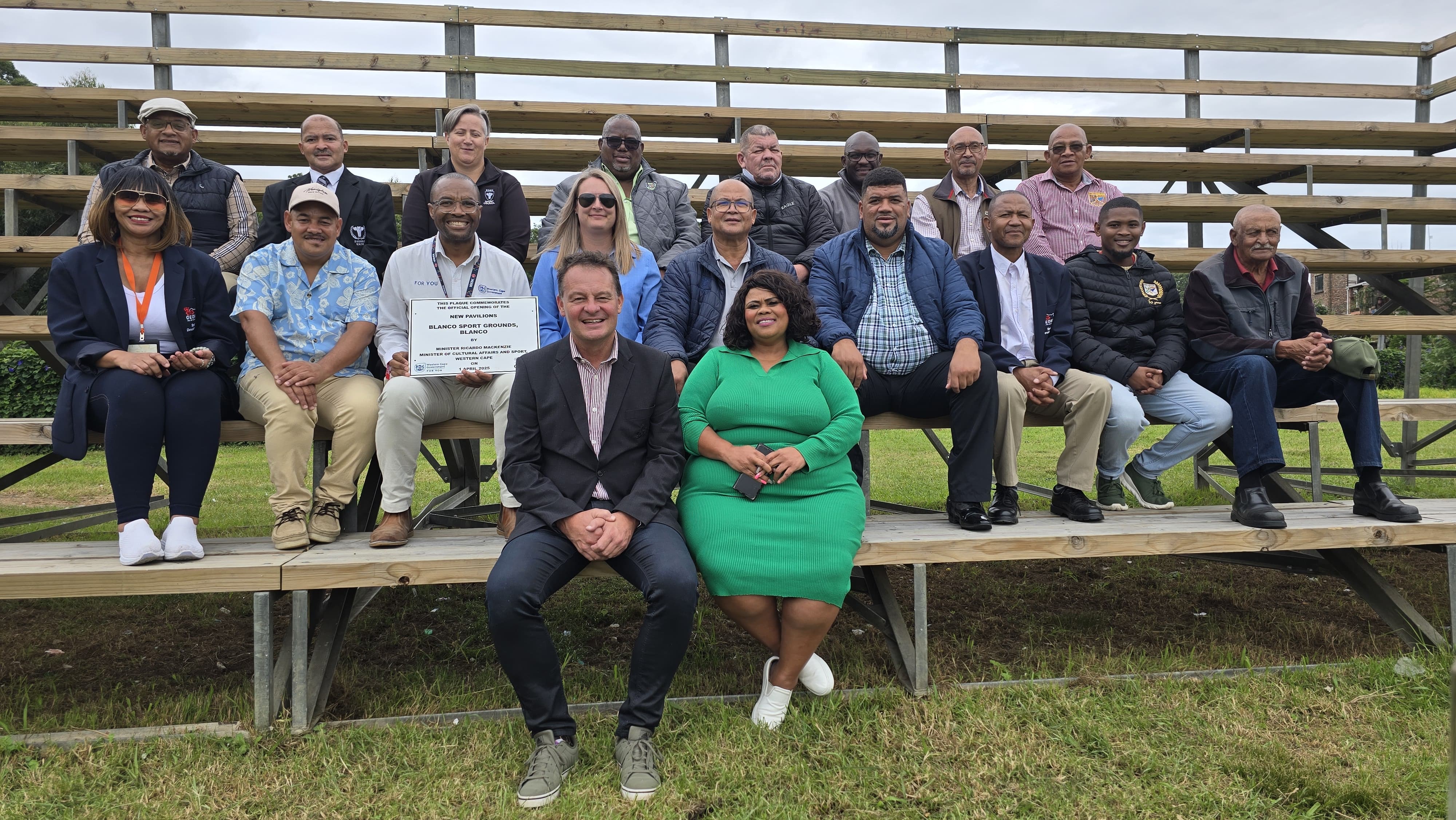 Munisipale amptenare, lede van die Eden-sportraad en Wes-Kaapse departement van kultuursake en sport op een van die nuwe paviljoene ná die opening. Foto's: Kristy Kolberg
