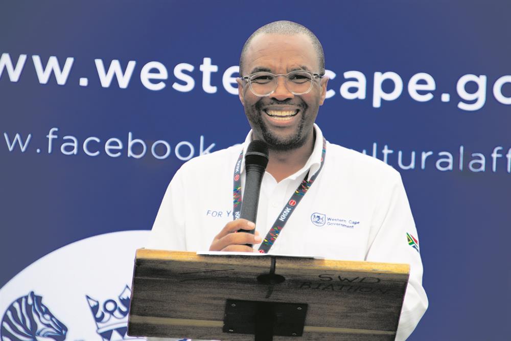 Die Wes-Kaapse Minister van kultuursake en sport, Ricardo Mackenzie, deel 'n ligte oomblik tydens sy toespraak.