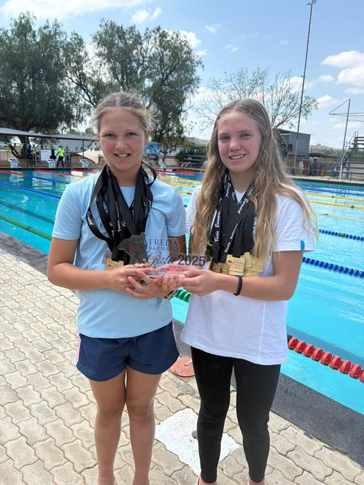 Die trofeë vir junior victrix ludorum en senior victrix ludorum is onderskeidelik gewen deur die sussies Elke (11) en Isabeau Coetsee (13) van Garden Route Swim School.