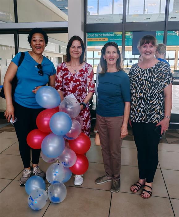 Excitement at the airport as the parents and grandparents wait for their children to arrive from Botswana. Here are Nicoline Jansen, Joan and Renee van Wyngaard and Jolene Meintjies.