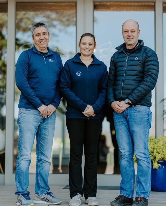 Die hokkietoernooi is moontlik gemaak het deur die borge Ters Giliomee van Top Gear Sport (links) en Oeloff Badenhorst van TyreMart. By hulle is die skool se hokkieorganiseerder, Melony Kitching.