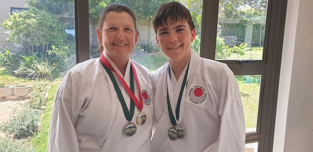 Anel Brandt (50, gold kata, bronze kumite) and Leroux Brandt (13, silver kata, bronze kumite).