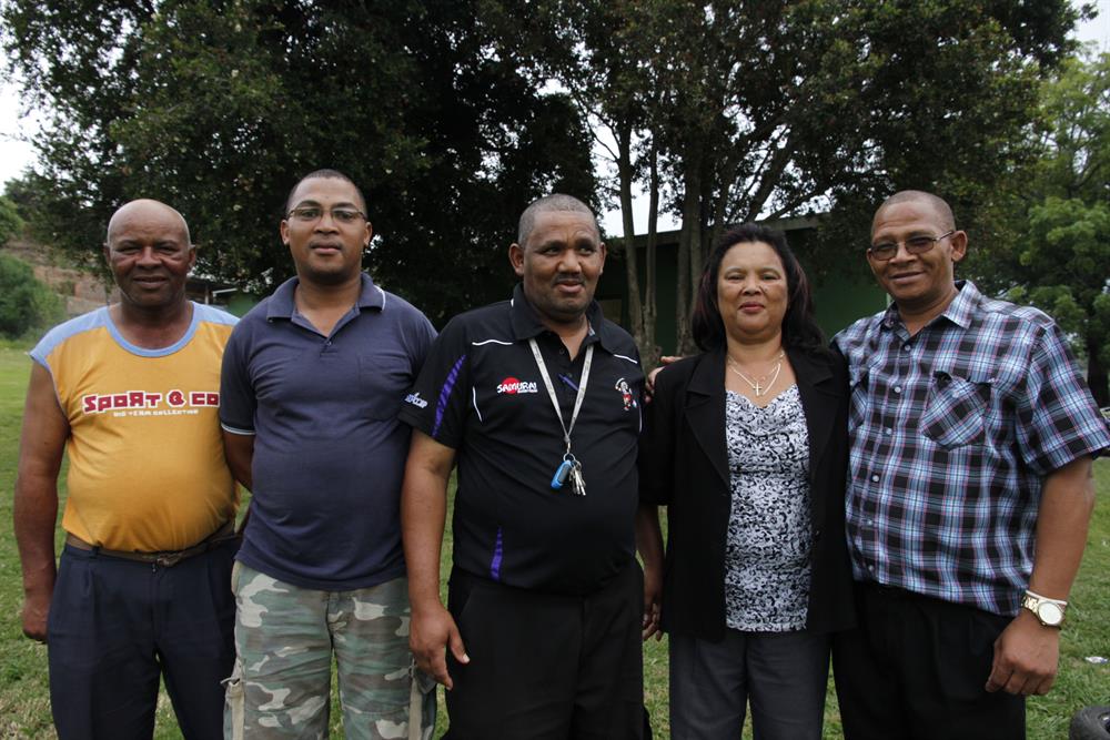 Blanco United-rugbyklub se bestuur vir die nuwe seisoen is, van links: Hans Rondganger (addi-sionele lid), Nico Filanie (ondervoorsitter), Daniel Crowley (voorsitter), Maggie Geswindt (onderse-kretaresse) en Bennie Barends (sekretaris). Foto: Hugo Redelinghuys