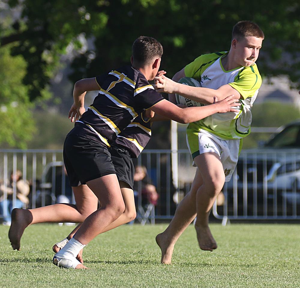 Alexander Helberg skud sy verdediger af op nog een van sy kraglopies. Hy was een van die uitstaande spelers op die o. 12-interprovinsiale toernooi in Riversdal.