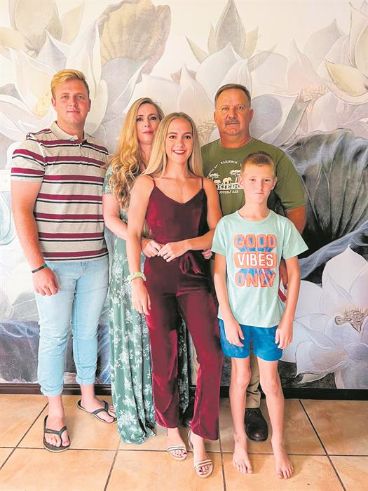 Die Kruger-gesin, Benrico, Engela, Shané, Stanley en Dandré (voor).